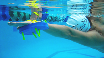 VoloBlades, due to their unique design, shift down the center of pressure, encouraging swimmers to pull with the lower palm. In addition, VoloBlades help swimmers develop awareness of what it feels like to pull with the lower palm as well as awareness of the connection between the hand, the arm and the core.